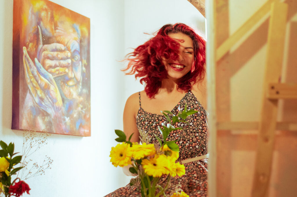 At the age of 18, Angie began painting and selling her artworks to tourists in Comuna 13. This experience not only nurtured her artistic talents but also motivated her to learn English, enabling her to convey the meaning behind her creations to international visitors.
